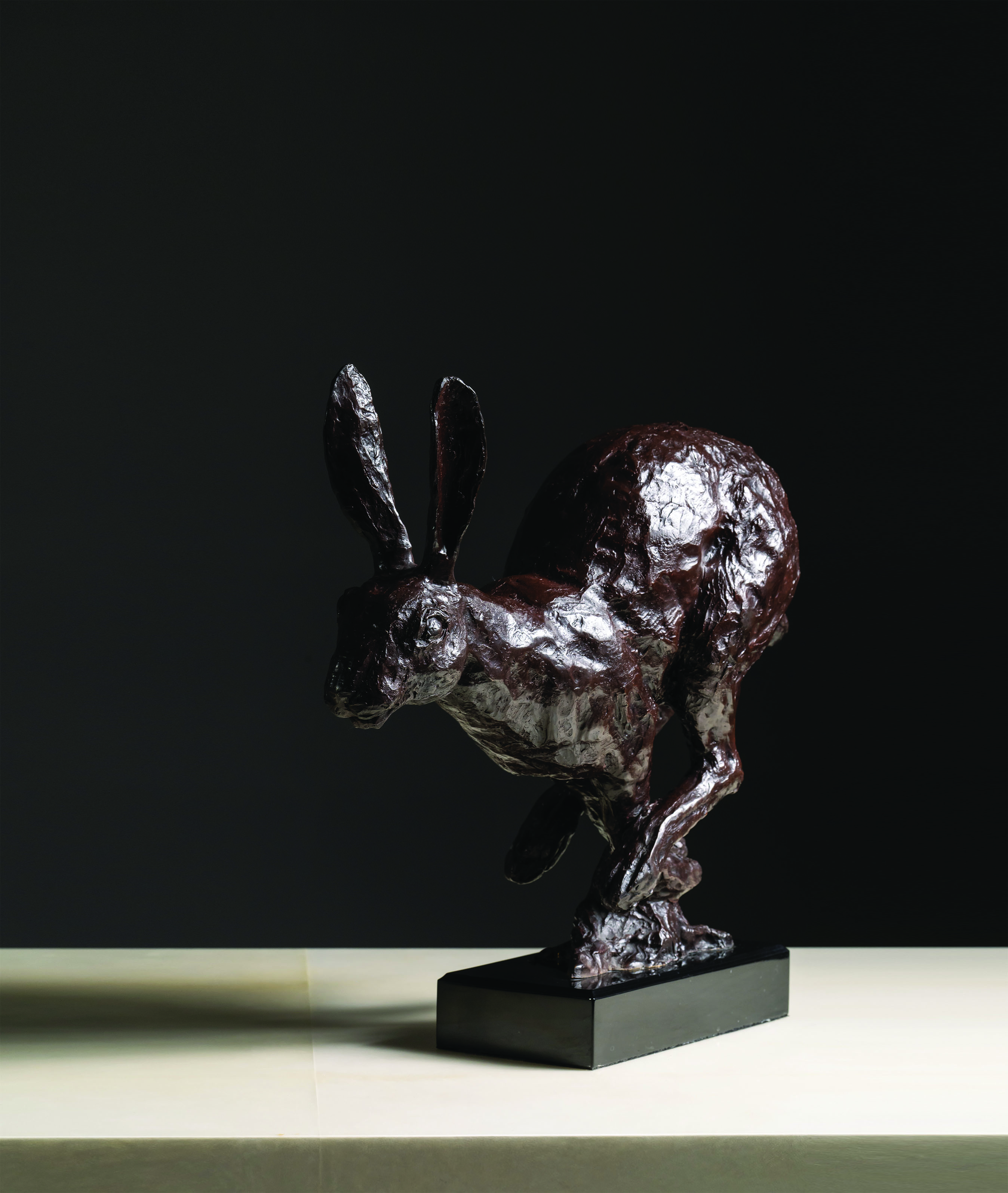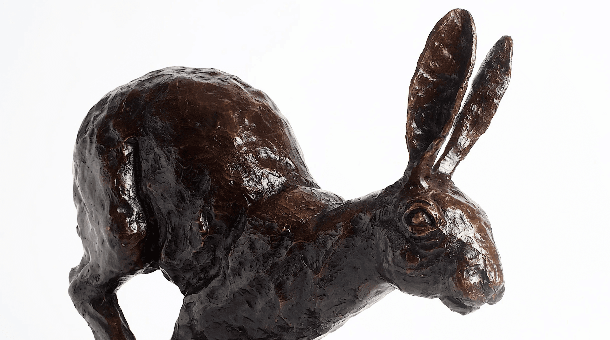 Cast in bronze and eternally moving along at a loping gallop. Don’t call this powerful hare a bunny.