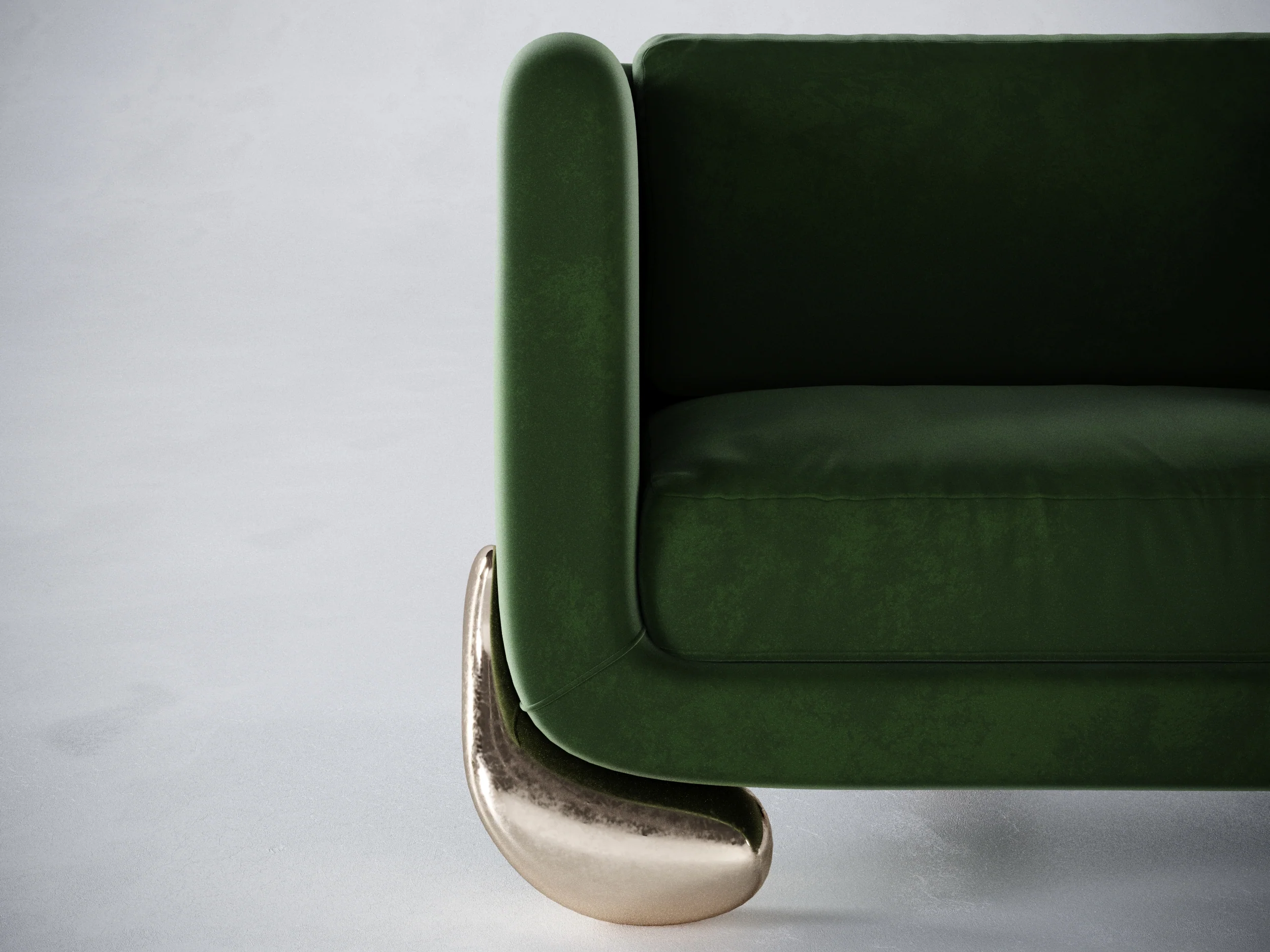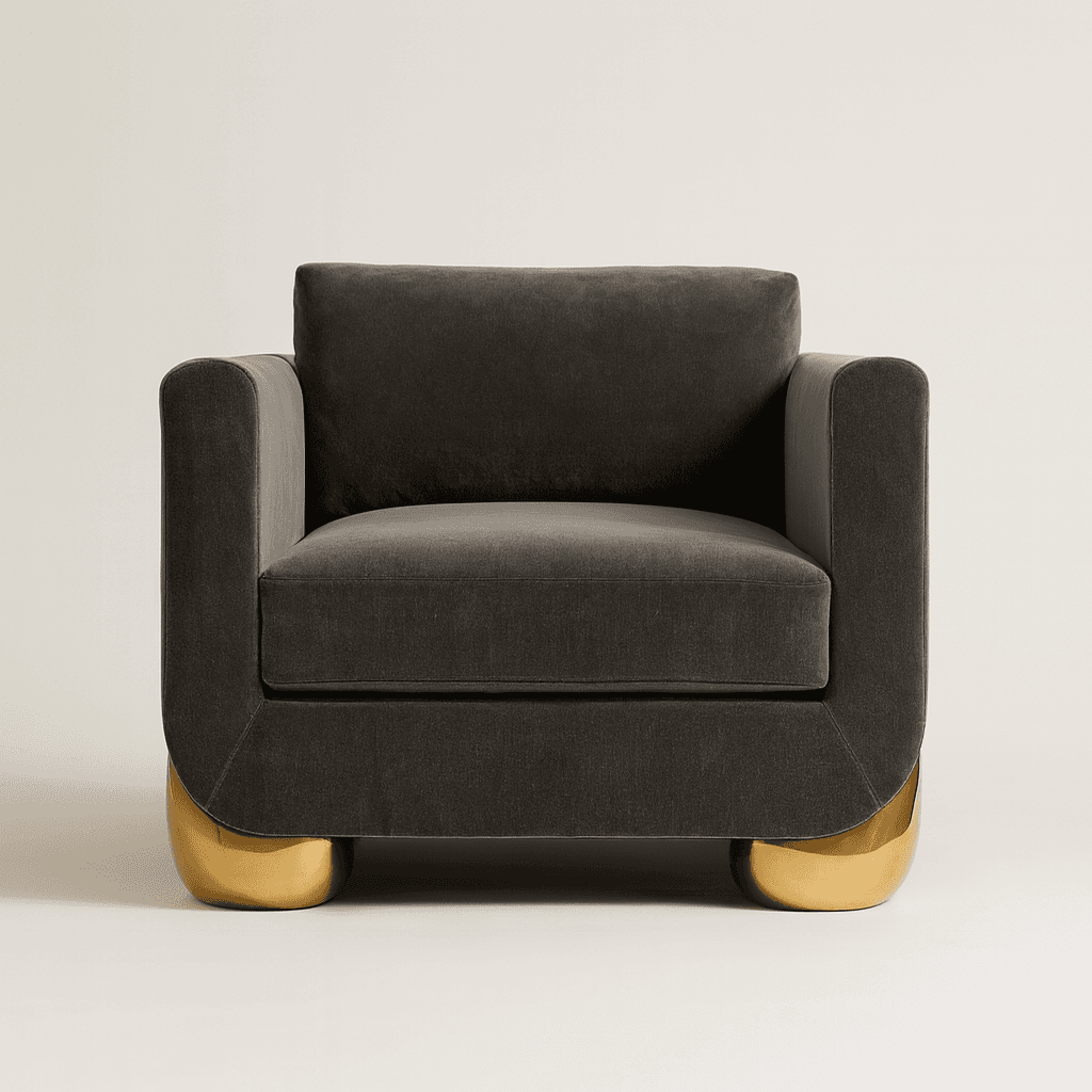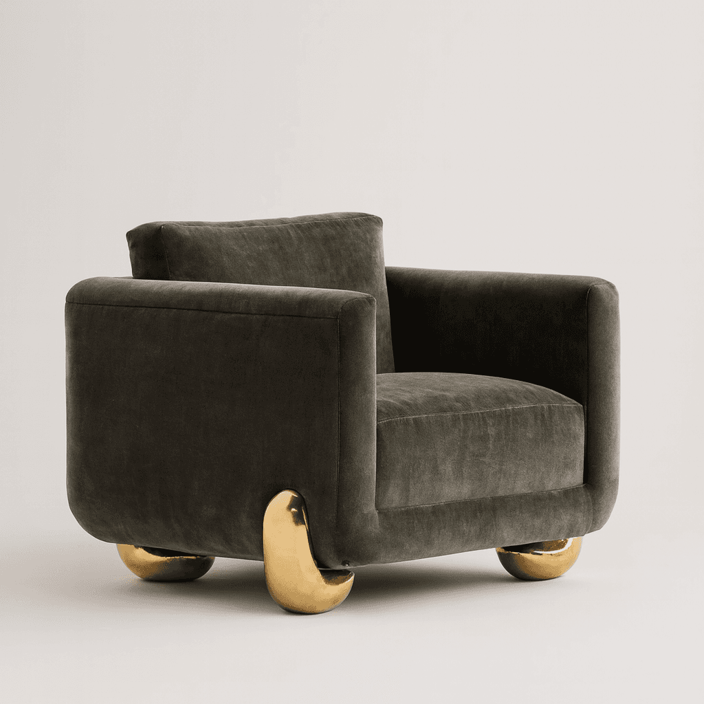 Unmistakably almost-but-not normal. Our Caillou Armchair blends mod restraint with a touch of the imaginary. Feet are cast bronze. Available in custom fabrics.