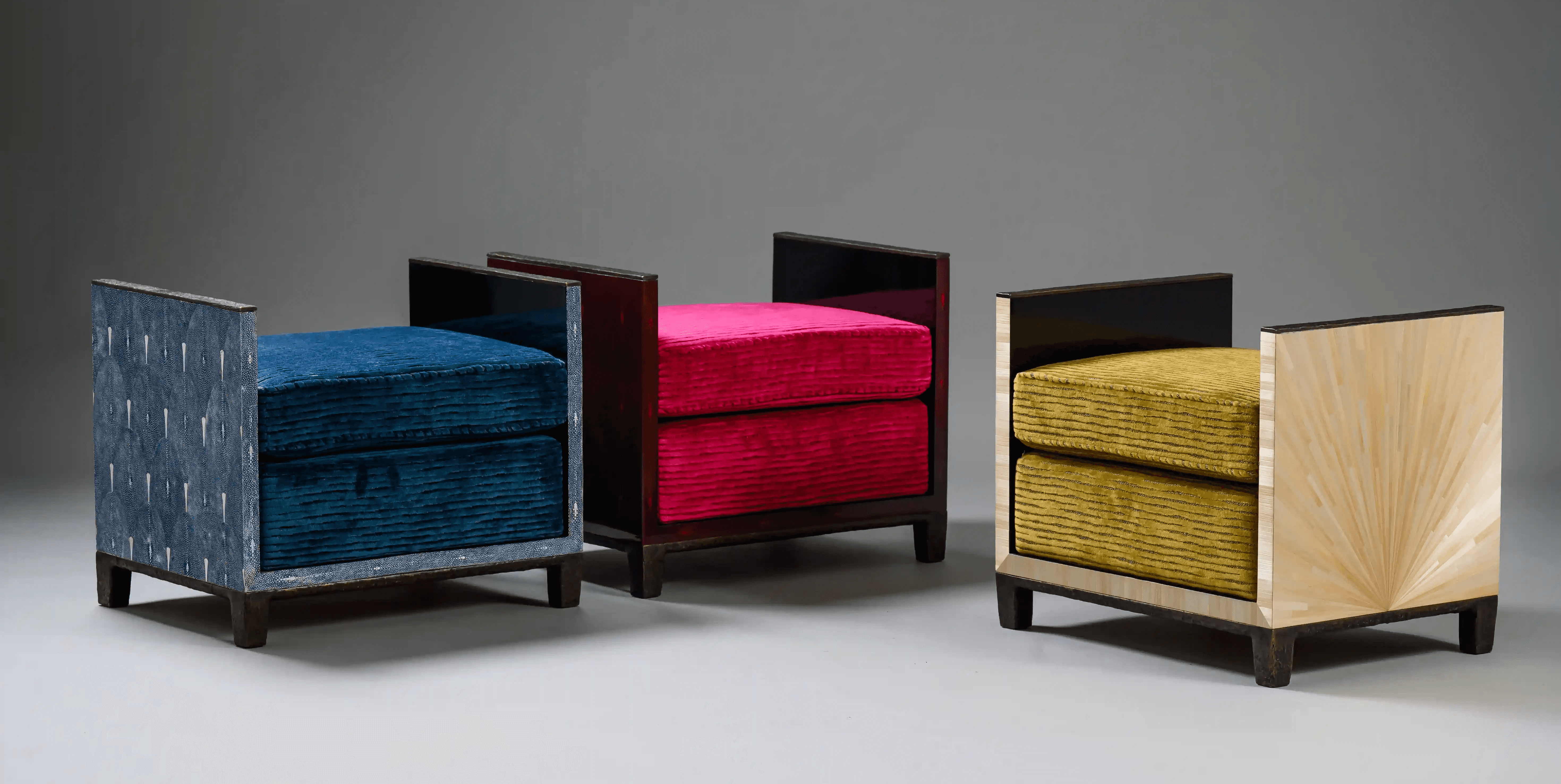 Indigo faux shagreen with antique bronze, blue fabric cushion.