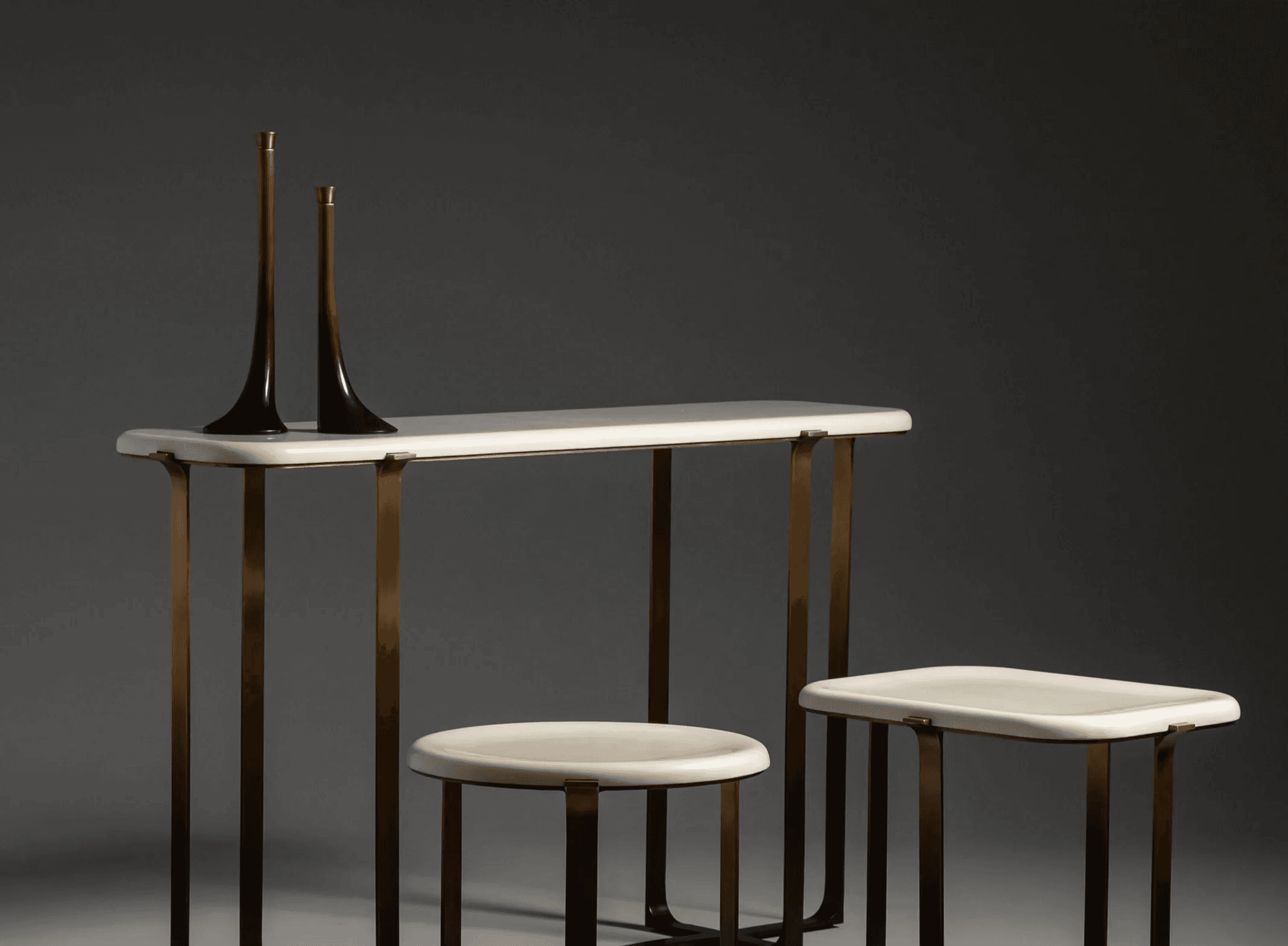 Minimal, but distinguished; the Arch Console is an ode to the power of small motions. Parchment top with cast bronze base.