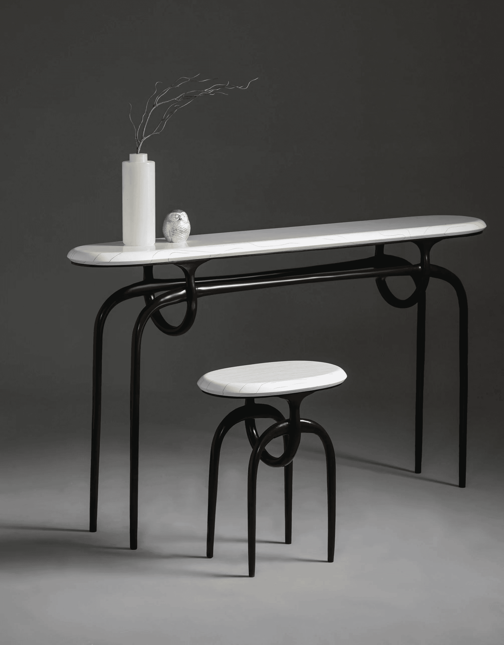 Lennon Console featuring solid bronze base and Gesso Top.
