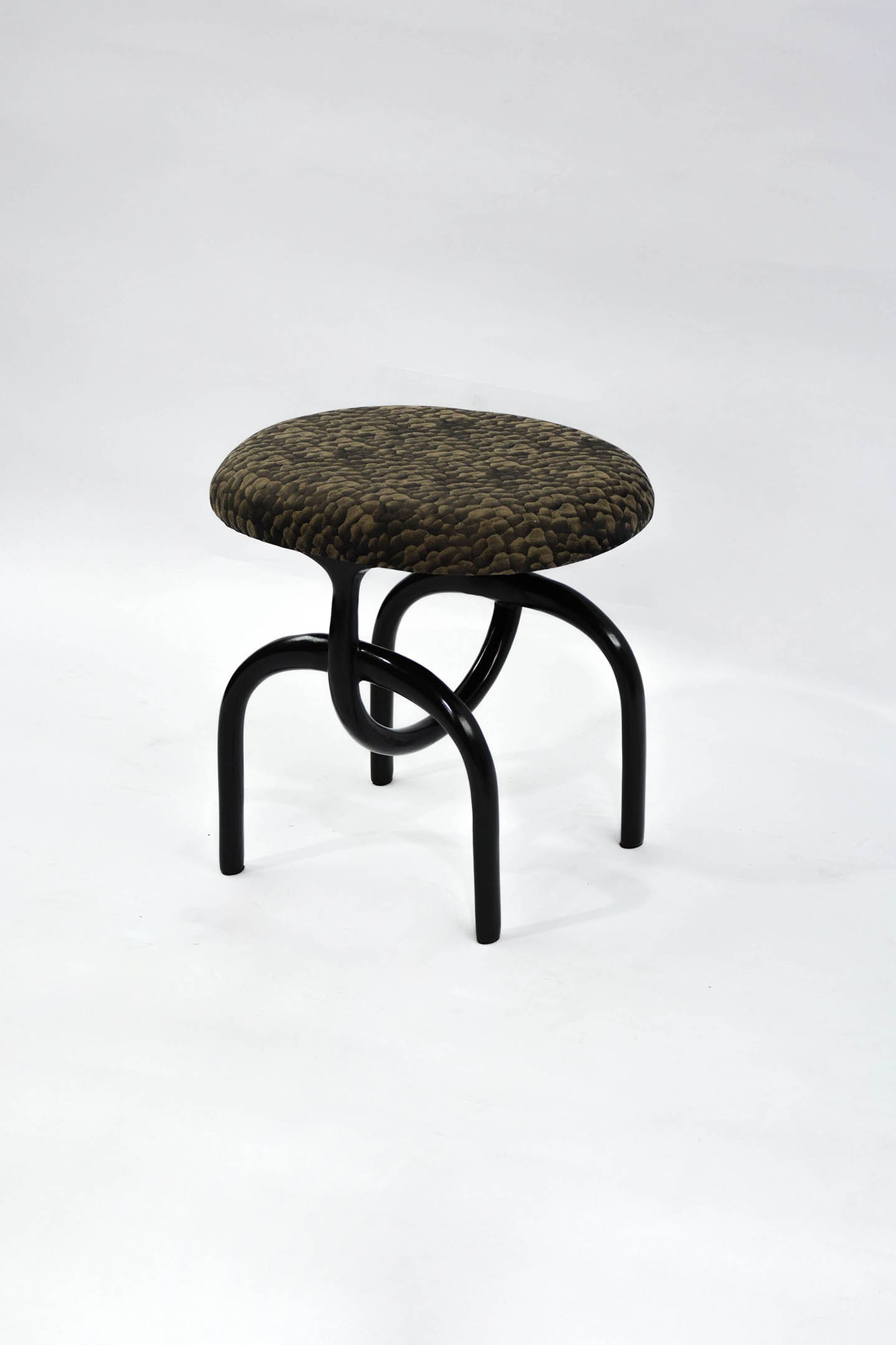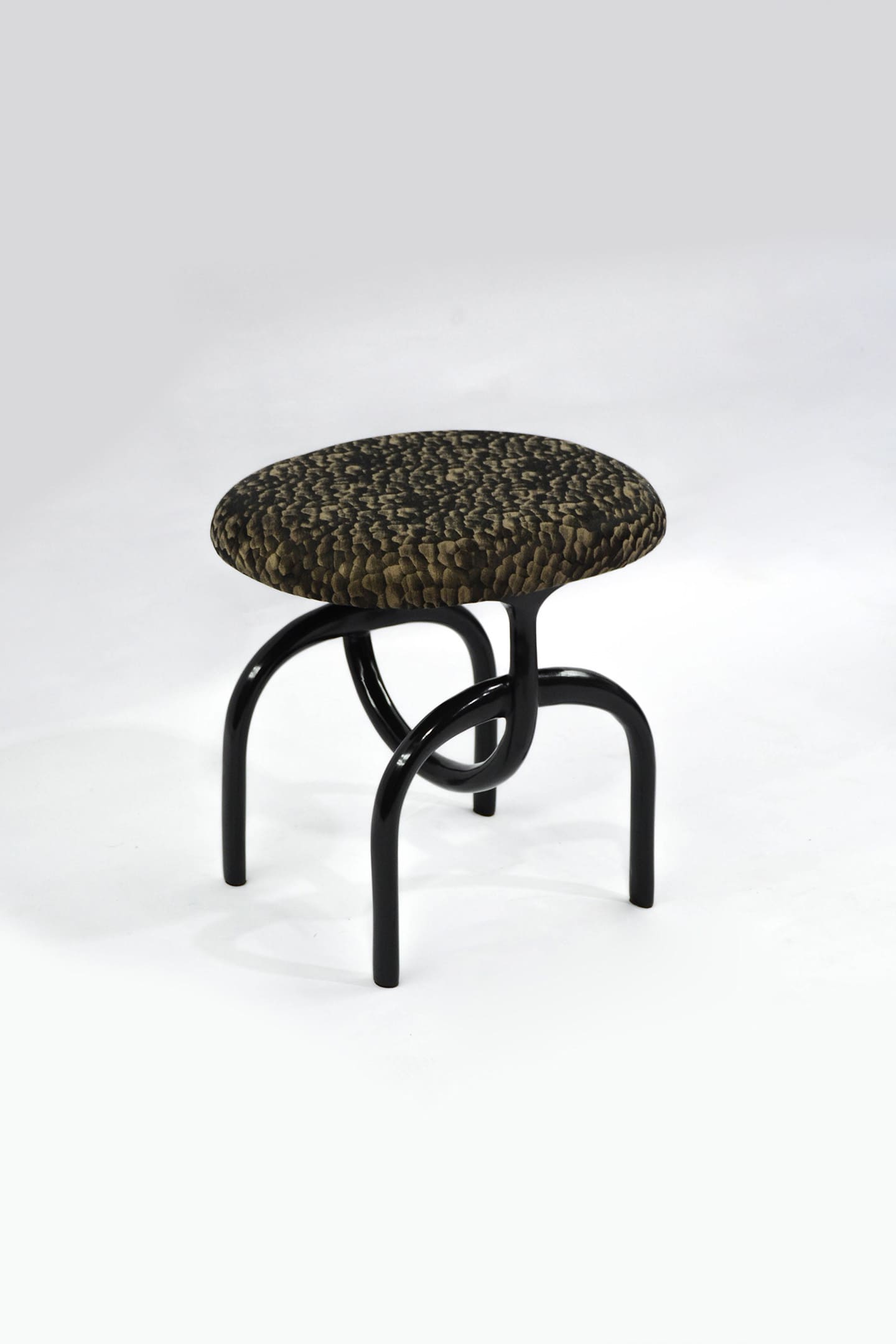 Lennon Stool featuring solid bronze base and upholstered top.